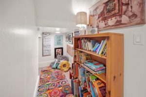 The flexible layout offers three bedrooms and a loft upstairs, a main-level library, and a fully finished basement with a theater, exercise room, and additional bedroom. Indoor living flows seamlessly to a private outdoor setting featuring a covered patio, fireplace, and hot tub.